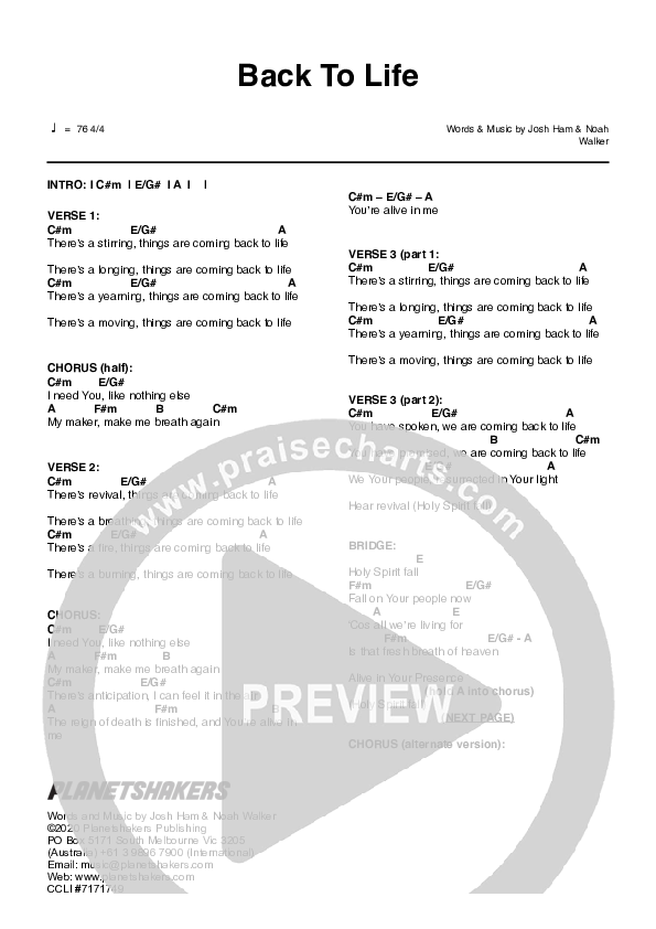 Back To Life Live Chords Pdf Planetshakers Praisecharts